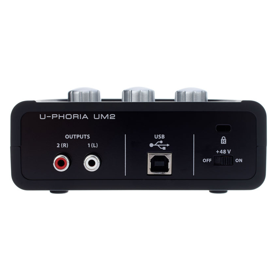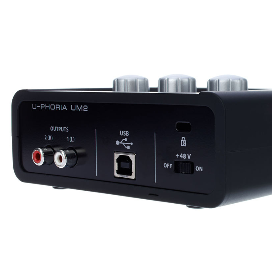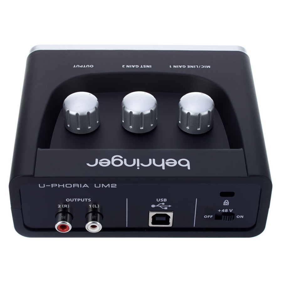 UM2 nudi dva nezavisna ulaza. Prvi je combo XLR/6,3 mm priključak za mikrofone ili linijske izvore, a drugi je 6,3 mm Hi-Z ulaz za direktno priključivanje gitare ili basa bez potrebe za DI Box uređajem. Stereo RCA izlaz na zadnjoj strani povezuje se sa aktivnim monitorima, dok 6,3 mm izlaz za slušalice na prednjoj strani omogućava precizan monitoring.
