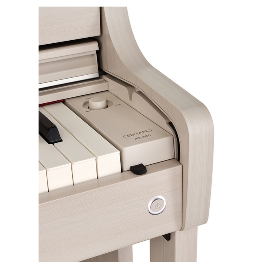 Tri integrisane pedale (sustain, sostenuto i soft) i poklopac za dirke čine AP-300 kompletnim kabinet instrumentom bez potrebe za dodatnom opremom.