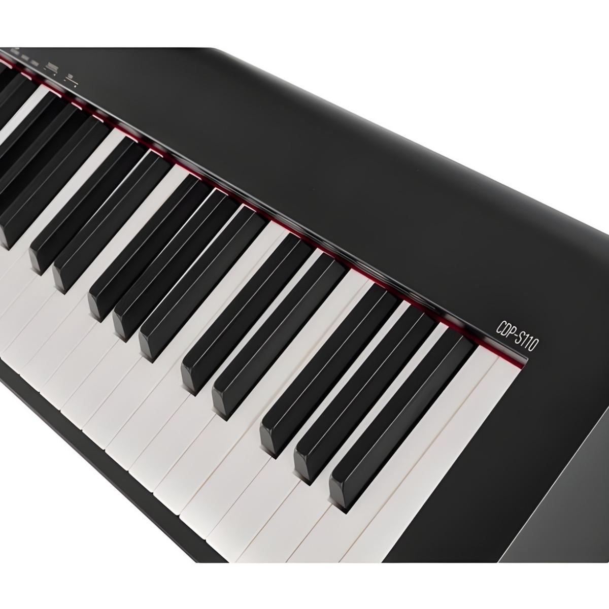 Ugrađeni stereo zvučnici snage 2 x 8 W obezbeđuju dovoljno jačine za kućnu upotrebu. Priključak za slušalice omogućava tiho vežbanje. Digitalni klavir Casio CDP-110 podržava povezivanje sa mobilnim uređajima putem USB to Host konekcije. To olakšava korišćenje edukativnih aplikacija.