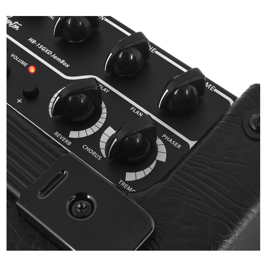 Ugrađena ritam mašina sa 36 ritmičkih obrazaca i podešavanjem tempa i glasnoće čini HB-15GXD JamBox praktičnim alatom za vježbanje bez ritam sekcije. Aux In omogućava reprodukciju pratećih pjesama sa spoljnog uređaja, a izlaz za slušalice/Line Out tiho vježbanje i direktno snimanje. Harley Benton HB-15GXD JamBox je praktičan izbor za vježbanje kod kuće.