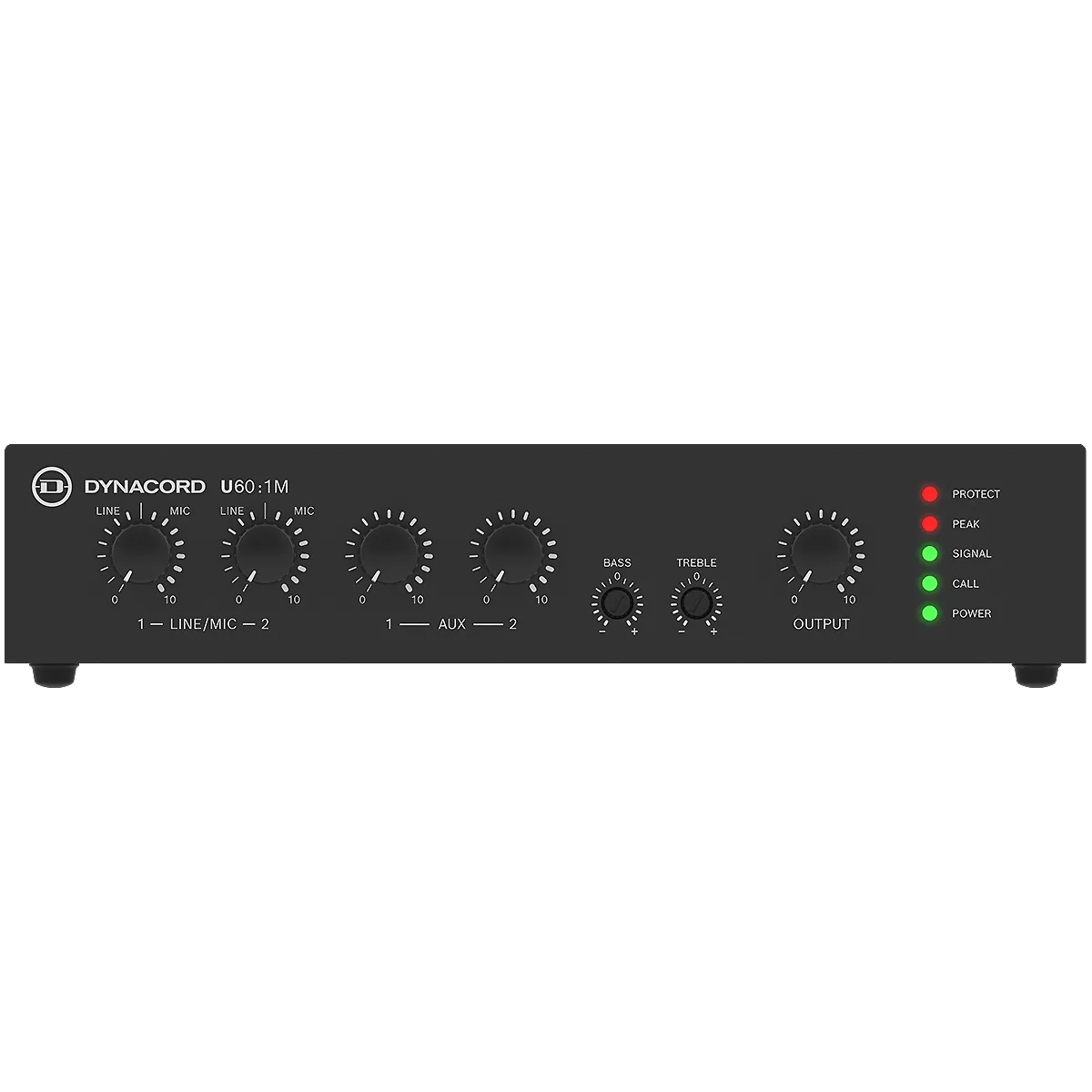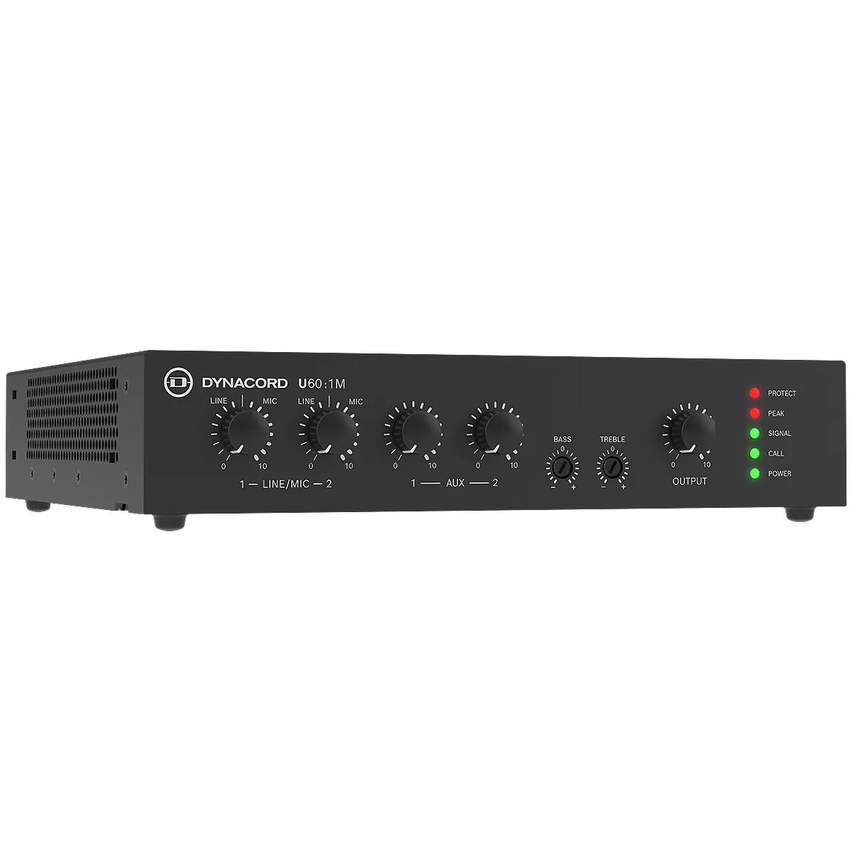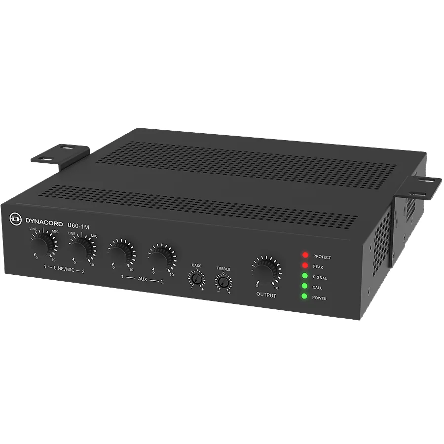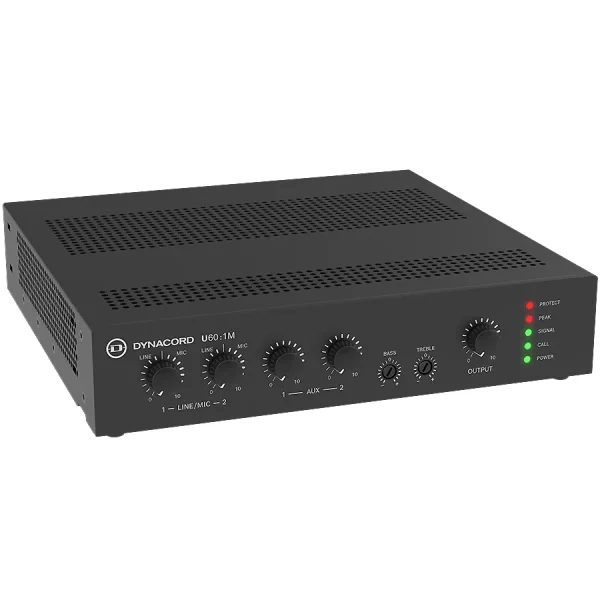 Dynacord U60:1M je mikser-pojačavač snage 60 W, razvijen da obezbedi kvalitet, performanse i potpunu pouzdanost u manjim i srednje velikim instalacijama. Idealan je za pozadinsku muziku i jasne glasovne najave, pa se savršeno uklapa u različita okruženja kao što su restorani, barovi, prodajni objekti, obrazovne ustanove, crkve, muzeji, galerije, saobraćajni centri i konferencijske sale.