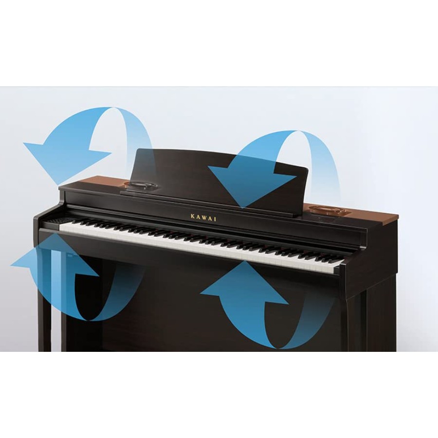 Bogat, ekspresivan zvuk proslavljenih koncertnih klavira firme Kawai, je srce nove Kawai CN serije, sa vodećim Shigeru Kawai SK-EX i visoko cenjenim Kawai EX instrumentima koji su s ljubavlju snimljeni i verno proizvedeni korišćenjem potpunog stereo semplovanja od svih 88 dirki. Sa dva prepoznatljiva koncertna koncertna klavira Kavai i tradicionalnim uspravnim na raspolaganju, vlasnici Kawai CN 301 mogu da istraže niz različitih zvukova klavira i uživaju u kontrastnim osobinama svakog od njih. Najnoviji Kawai CN 301 koristi naprednu tehnologiju progresivnog harmoničkog semplovanja, sa algoritmima koji do tančina reprodukuju sitne detalje kako se tonski karakter akustičnog klavira menja, kako se dinamika sviranja povećava. Ovo obezbeđuje besprekornu ekspresiju kada svirate od nežnog pijanisima do gromoglasnog fortisima, bez naglih promena u zvuku. Ovi realistični zvukovi klavira se isporučuju pomoću audio hardvera visokih performansi, a sistemi zvučnika nude odličnu projekciju tona. Tehnologija je dopunjena novoproizvedenim adapterom za napajanje koji doprinosi ukupnom glatkom i jasnom zvuku i obezbeđuje vernu reprodukciju izvora akustičnog klavira – čak i kada svirate na visokim nivoima jačine zvuka.
