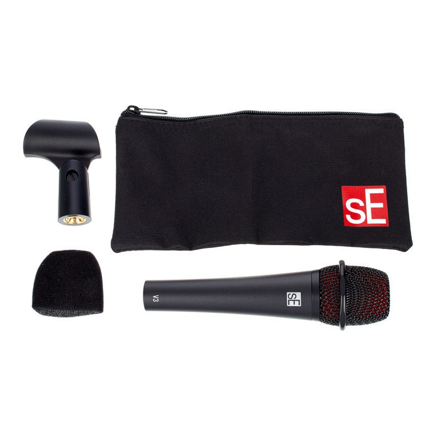 sE Electronics V3 posjeduje Integrisani antivibracioni sistem kapsule koji smanjuje prenos mehaničkih vibracija i šuma rukovanja, doprinoseći čistijem signalu u live okruženju.