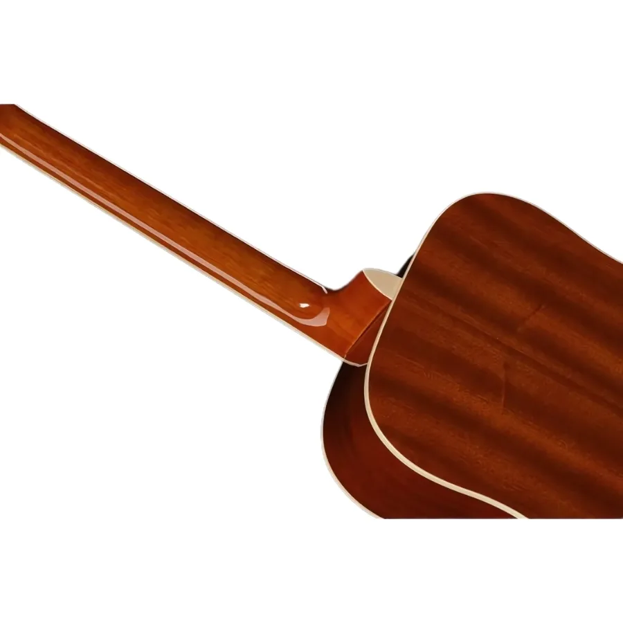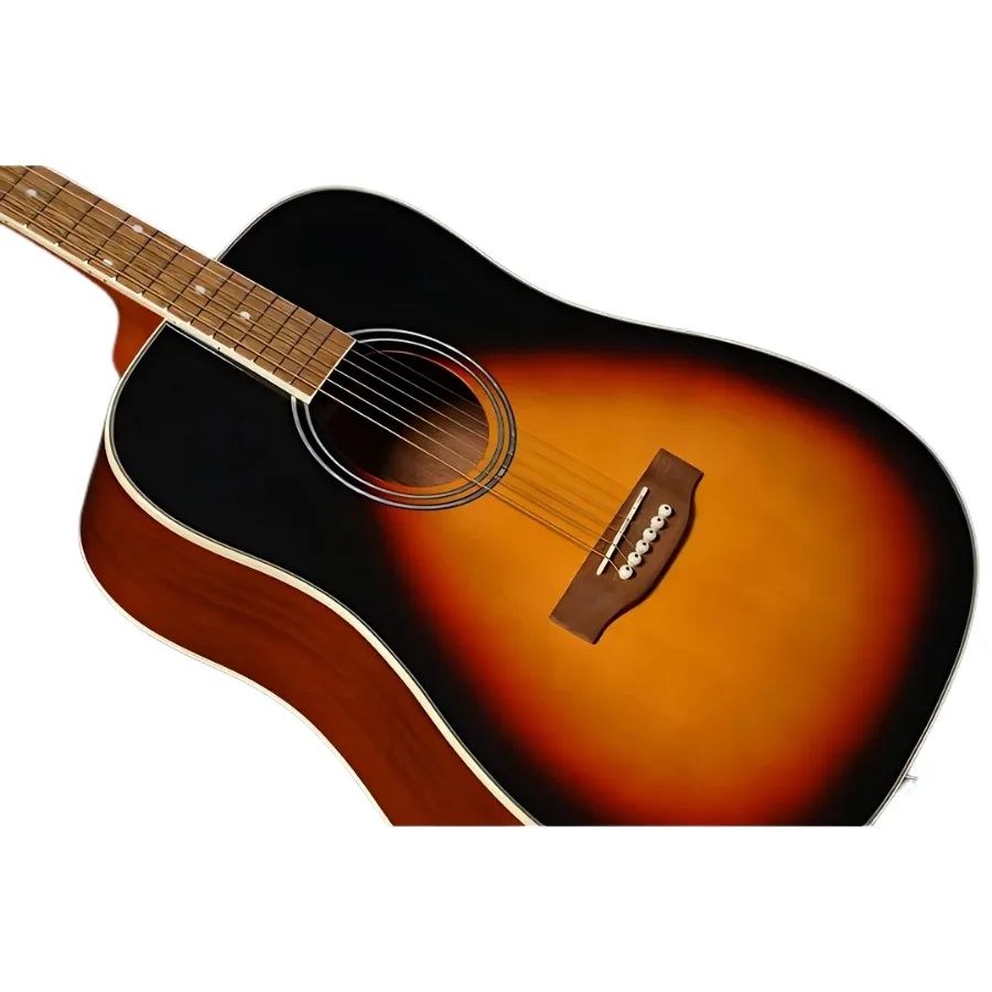 predstavlja odličan izbor za sve koji žele da zakorače u svet dreadnought gitara. Kombinuje pouzdanu izradu, uravnotežen zvuk i pristupačnu cenu. Izrađena tradicionalnim lastinim repom (dovetail joint), ova gitara poseduje telo, vrat i bočne strane od mahagonija, što donosi bogate harmonike, tople tonove i impresivan sustain. Ploča od smreke dodatno naglašava jasnoću tona, dok hromirane čivije obezbeđuju stabilno štimovanje. Prirodna estetika drveta upotpunjena je krem vezom, detaljnim urezima i visokosjajnom završnom obradom, što instrumentu daje izgled koji prevazilazi očekivanja u ovom cenovnom rangu.