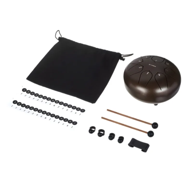 U kompletu se isporučuje futrola za transport, mallet čekić, prstić-pick za sviranje prstima i oznake-štikls koje pomažu u učenju pozicija nota, čime Tongue Drum 6″ Lotus B omogućava svestranu primenu — od meditacije i muzičke terapije do savremenih muzičkih projekata.