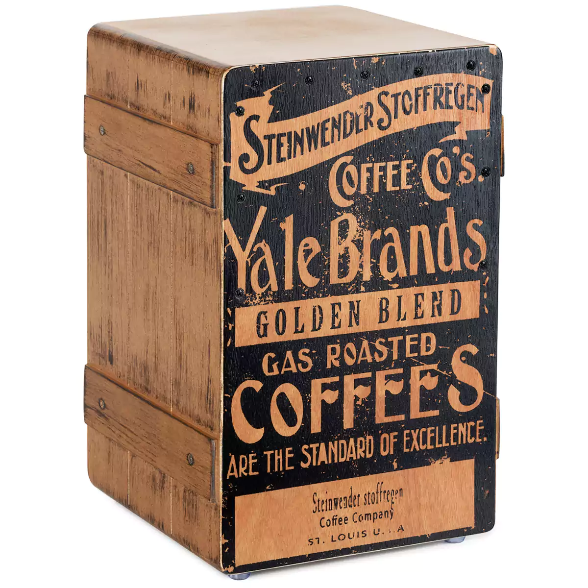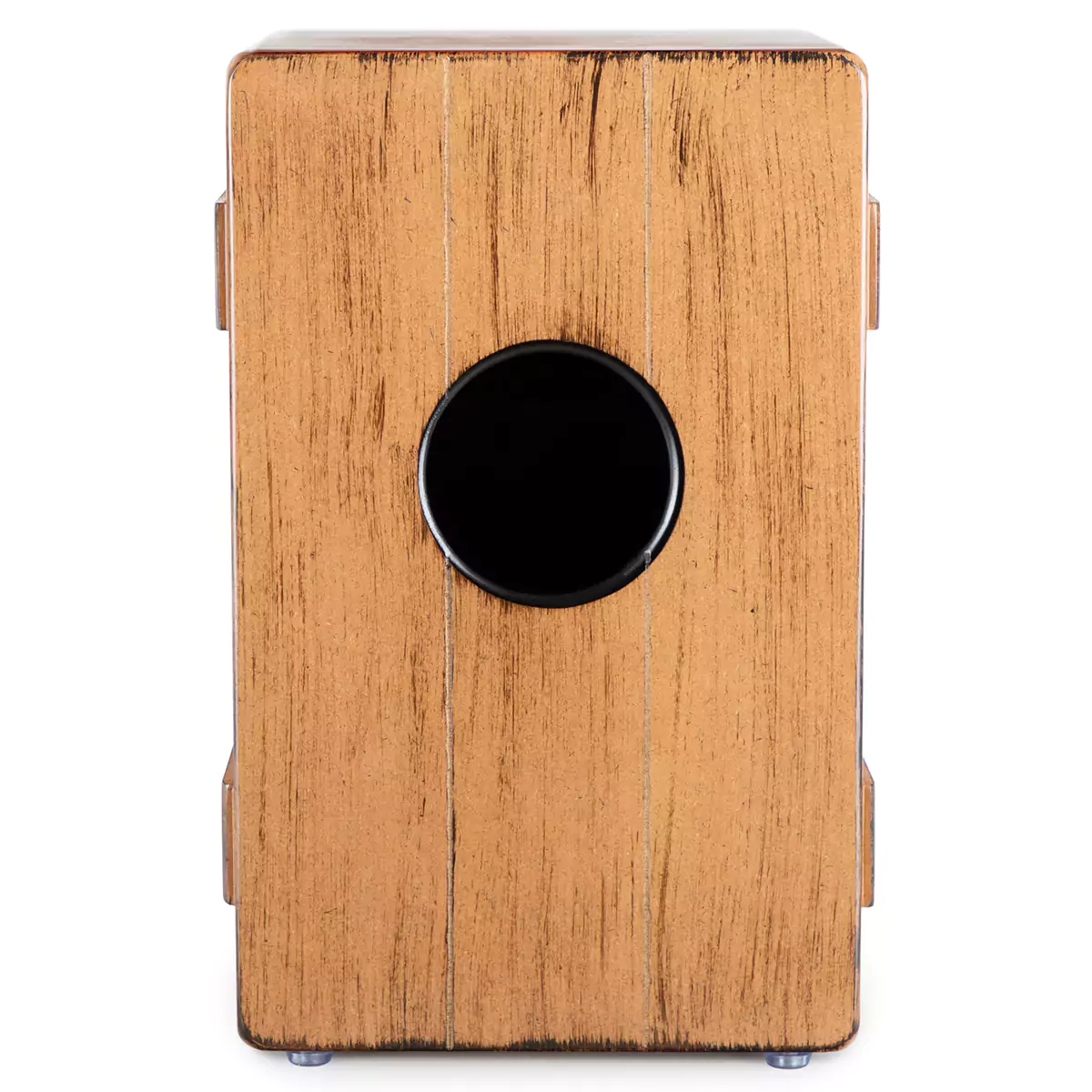 Bočne lajsne i blago “shabby chic” drveni izgled podsećaju na poreklo cajona: pre nego što su postali samostalni muzički instrumenti, kutije za banane služile su kao zamena za bubnjeve. Pravi mamac za poglede je odštampana udarna površina, koja drži cajon u centru pažnje čak i tokom pauza.