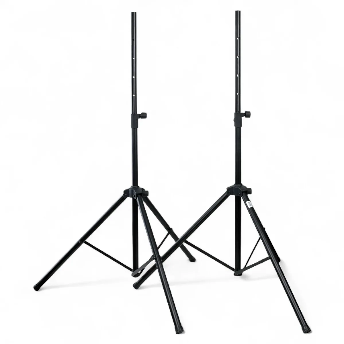 predstavlja profesionalan komplet od dva stalka , dizajniran s fokusom na stabilnost, prenosivost i prilagodljivost za različita audio okruženja.