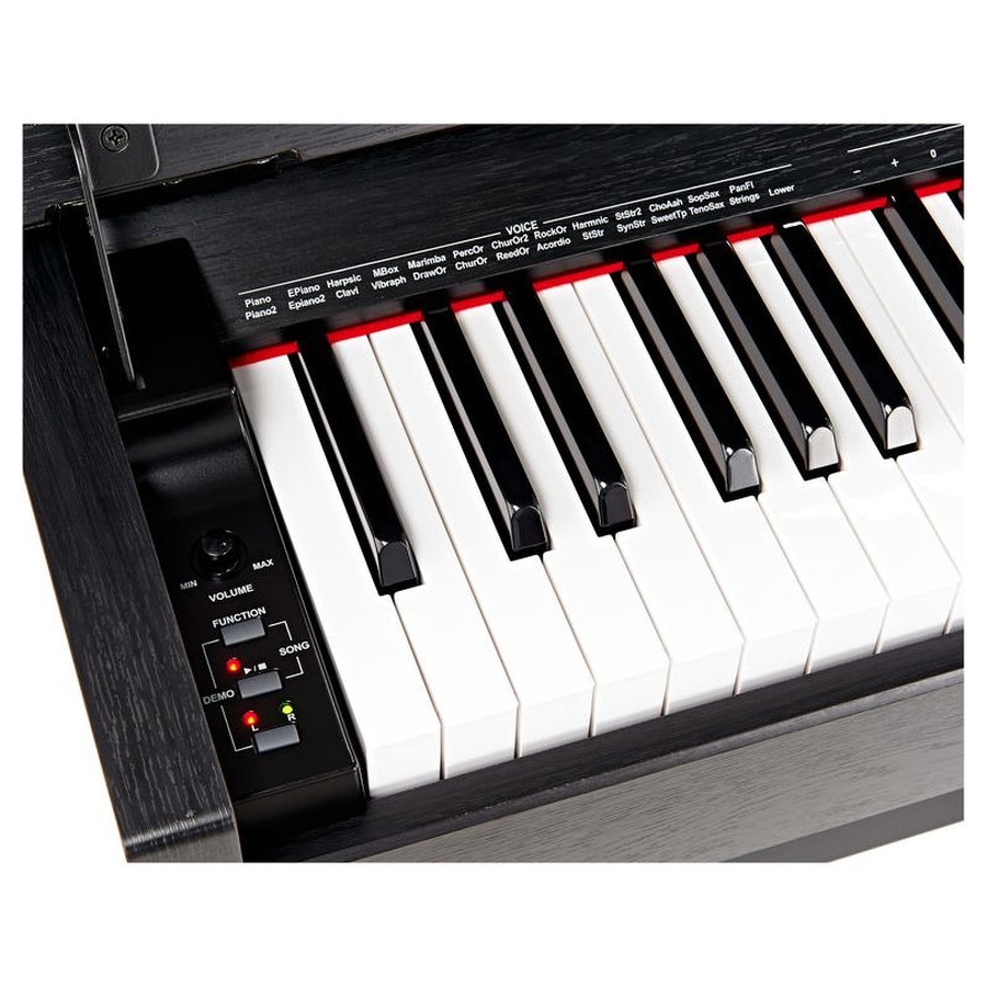 Hammer Action klavijatura daje uvjerljiv osjećaj pod prstima zahvaljujući optimalnom odzivu dirki. Biblioteka od 26 zvukova pokriva klavirske tonove, električne klavire, orgulje i prateće zvukove, a Reverb, Chorus i Master EQ daju prostor za prilagođavanje zvuka. Zvučnici 2 × 15 W osiguravaju dovoljan nivo glasnoće za kućnu upotrebu i nastavu.
