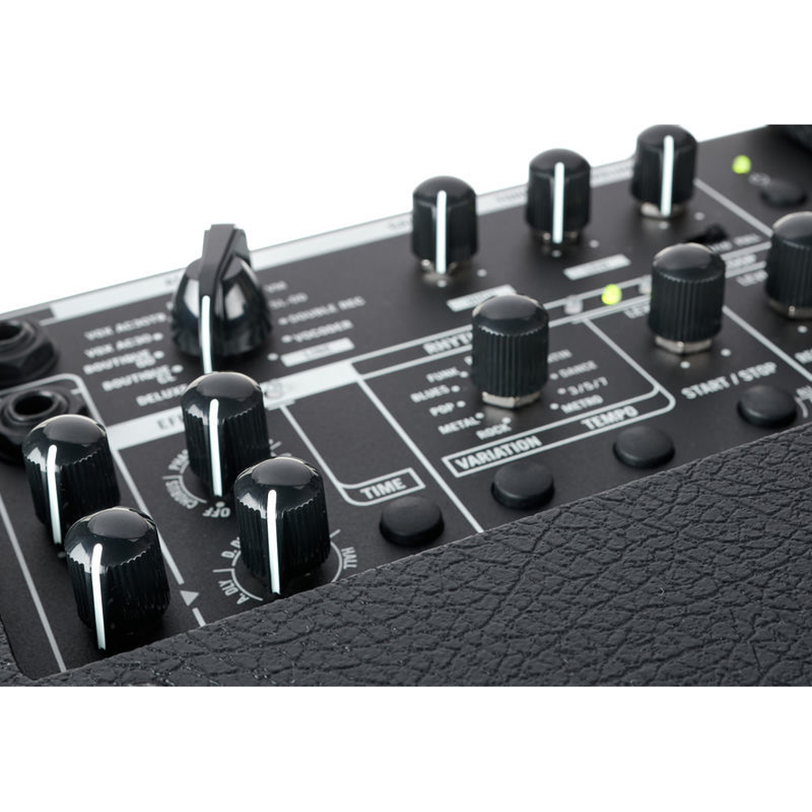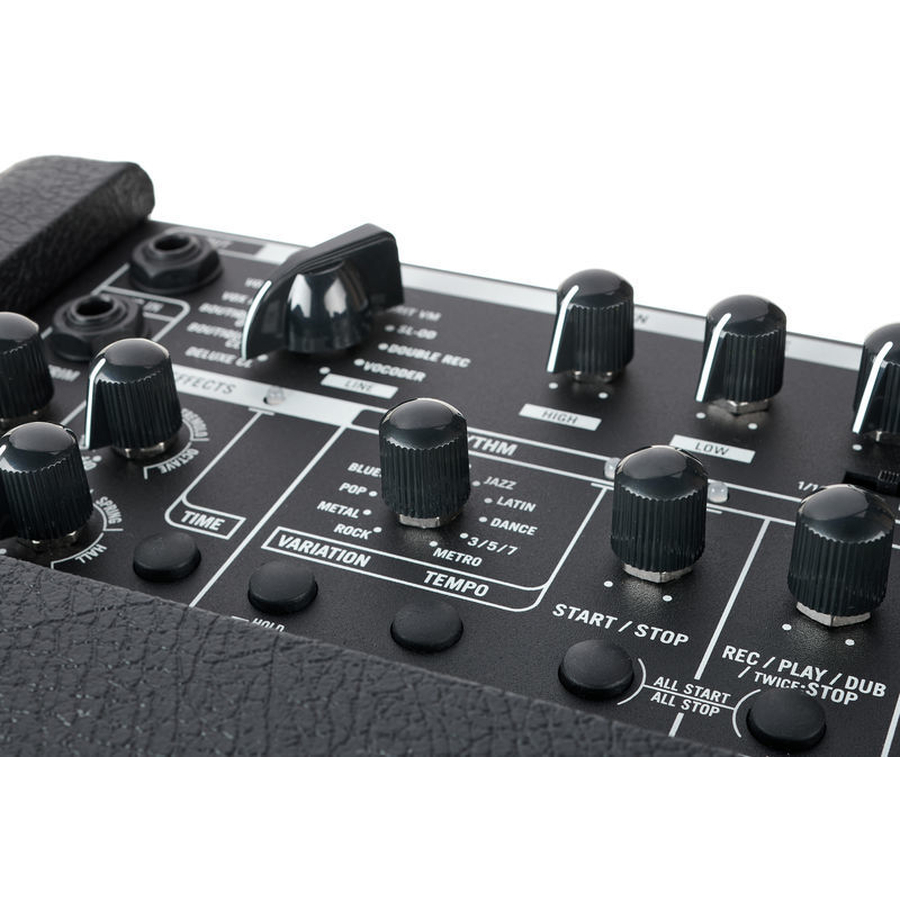 Ulaz za mikrofon ima nezavisnu Volume kontrolu i Delay/Reverb efekat za vokale. AUX ulaz (3,5 mm) prima signal sa eksternih uređaja. Izlaz za slušalice koristi kabinetski simulator za vježbanje i snimanje. Priključak za footswitch podržava VFS3 model (kupuje se zasebno) za upravljanje ritmom, looperom i efektima nogom.